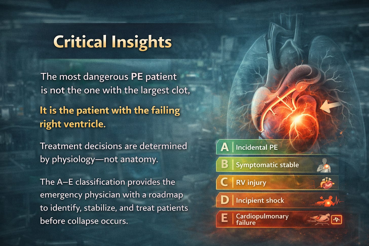 The role of the emergency physician is not simply to diagnose PE—but to identify which patient will deteriorate, which patient needs reperfusion, and which patient can safely go home.