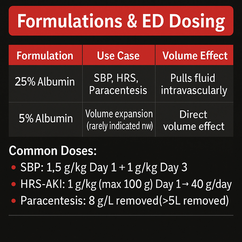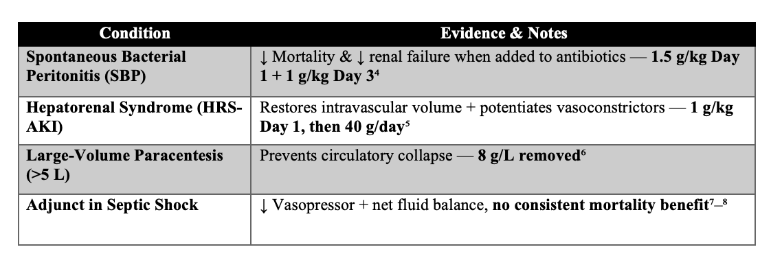 Albumin is far from a benign “better fluid” — it’s a high-cost therapy with very specific, evidence-based indications. In Emergency Medicine and critical care, albumin is not for simple “low albumin levels” or routine volume expansion.¹-³