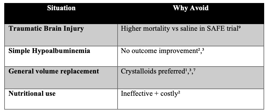 Where Albumin Should NOT Be Used ?