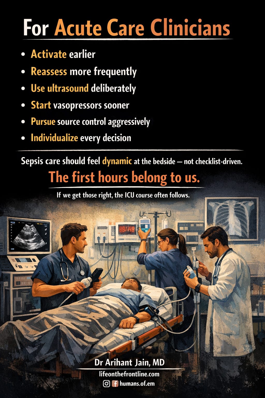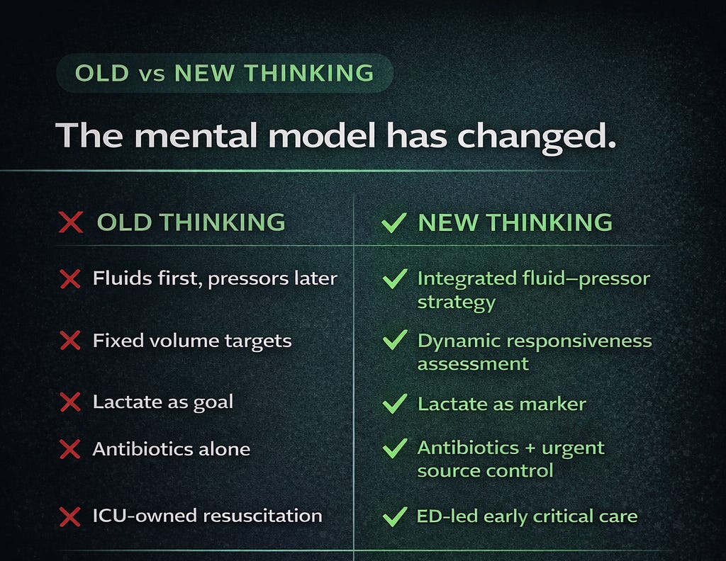 For acute care clinicians, this is not an academic nuance. It is the difference between fluid overload and organ recovery. Between delayed vasopressors and preserved perfusion. Between antibiotics alone and definitive source control.